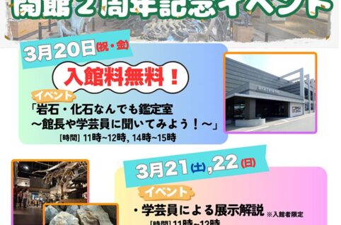御所浦恐竜の島博物館では、収蔵標本の燻蒸作業を下記の日程で行います。作業期間中は、一部の剥製を含む展示がご覧いただけません。皆様には大変ご不便をおかけしますが、ご理解・ご協力のほどよろしくお願い申しあげます。 期間 令和...